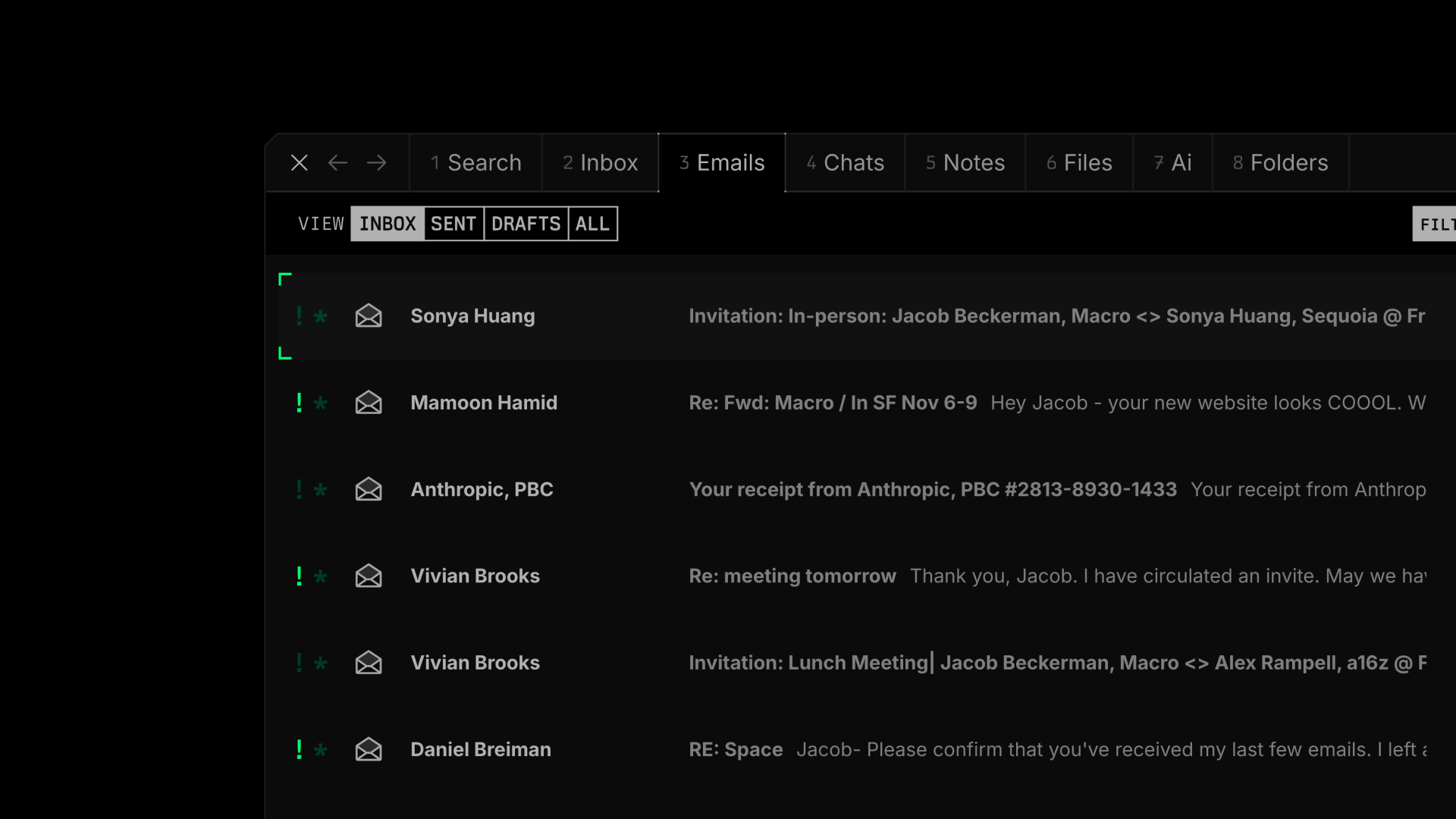 Superhuman shortcuts and speed x Cursor-like AI. Mash e to triage emails, DMs, channels, and to-dos. Conntect your existing Gmail or Google Workspace account.